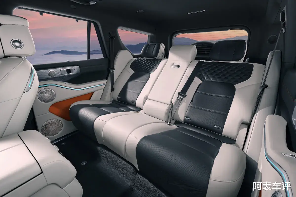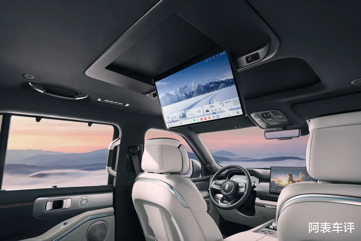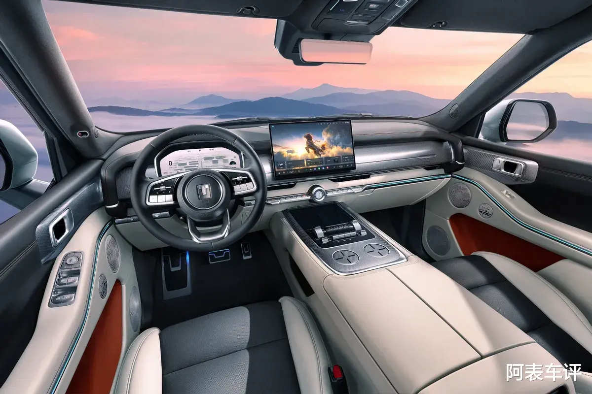 内饰与实用配置的调整更偏向日常家用场景。坦克700 Hi4-Z取消传统机械式换挡杆,改为怀挡设计,释放中控台面空间;中控屏尺寸较Hi4-T进一步加大,原屏幕下方物理按键整合至副仪表台区域,操作集中化更符合用车习惯。副仪表台同步增设开放式横向双杯架,放置水杯、饮品更稳固。舒适配置方面,新车新增宽温域车载冰箱,工作温区覆盖-6摄氏度至50摄氏度,兼顾制冷与制热需求;后排配备吸顶屏,提升长途出行的乘坐体验。车内保留双拼皮质座椅、菱形缝线与氛围灯设计,越野相关的实体控制按键也未精简,兼顾豪华感与功能性。