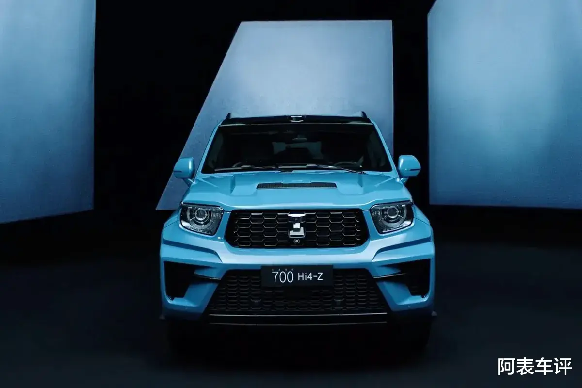 外观部分,坦克700 Hi4-Z采用全新敦煌青车漆,车身套件与坦克700 Hi4-T首发限定版保持相近风格,整体硬派方盒子轮廓、5105×2061×1985mm的车身尺寸与3000mm轴距均未改动,非承载式车身结构得以保留。