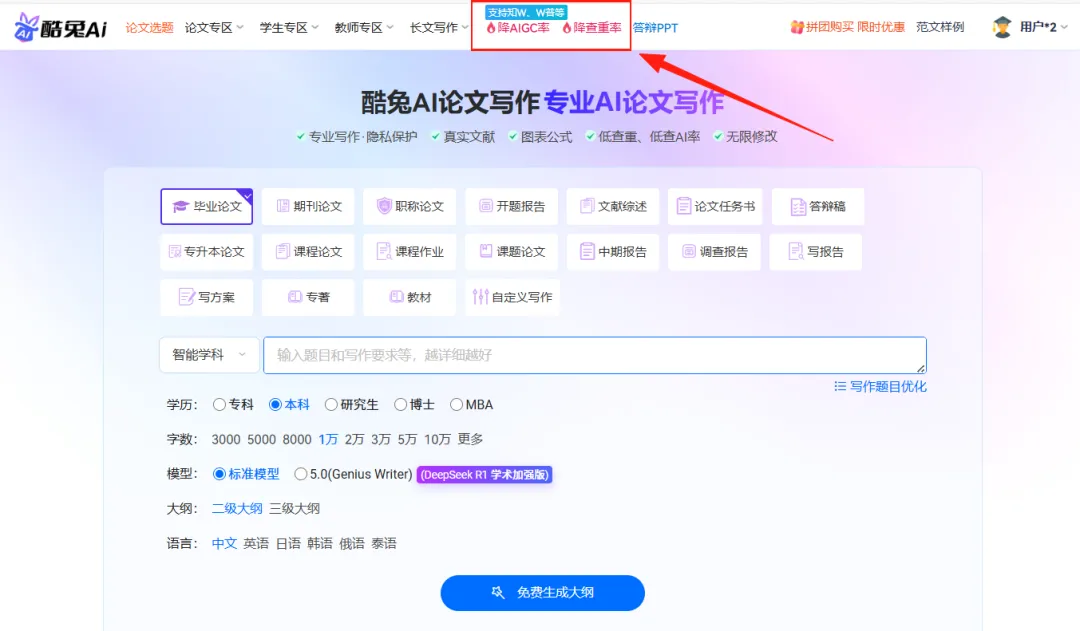 三、酷兔AI:聚焦长篇论文降重,适配超大型学术文稿酷兔AI官网:https://www.kutulunwen.com/酷兔AI是专为中长篇论文设计的论文降重网站,搭载大容量文本处理引擎,能稳定适配10万、20万字及更长篇幅文稿,处理硕士、博士论文优势明显,为长篇论文降重提供高效解决方案。它采用分章节降重+整体逻辑校准模式,避免降重后逻辑断裂,支持参考文献批量优化,确保论文原创性,是可靠的论文降重AI。