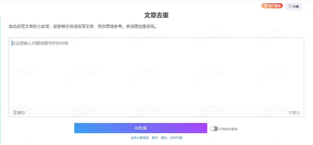 五、小鱼AI:适配多需求的论文降重工具,兼顾基础与进阶场景小鱼AI官网:xiaoyuxiezuo.com/AI_Af610f小鱼AI是能适配不同使用需求的论文降重神器,基础降重功能包含短篇论文改写、重复率初步优化,能满足课程论文等基础论文降重需求;进阶功能支持长篇论文降重、降AI率优化与人工降重辅助,可覆盖不同场景下的使用需求,是灵活适配的论文降重AI。操作简单,支持在线上传与实时预览,能直观看到降重效果。