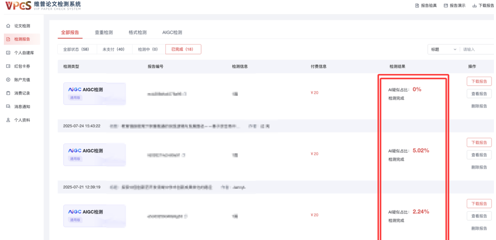 68爱写AI5.0技术,5分钟降至安全线内10%以内,降重后保持原专业性,不口语化表述,支持中英双语降重,高效解决论文高重复率问题。除了能处理整篇几千字论文到50万字的长篇论文降重降AIGC率之外,还支持分章节降重,能精准识别高重复率段落的语义核心与AI生成文本的典型特征。