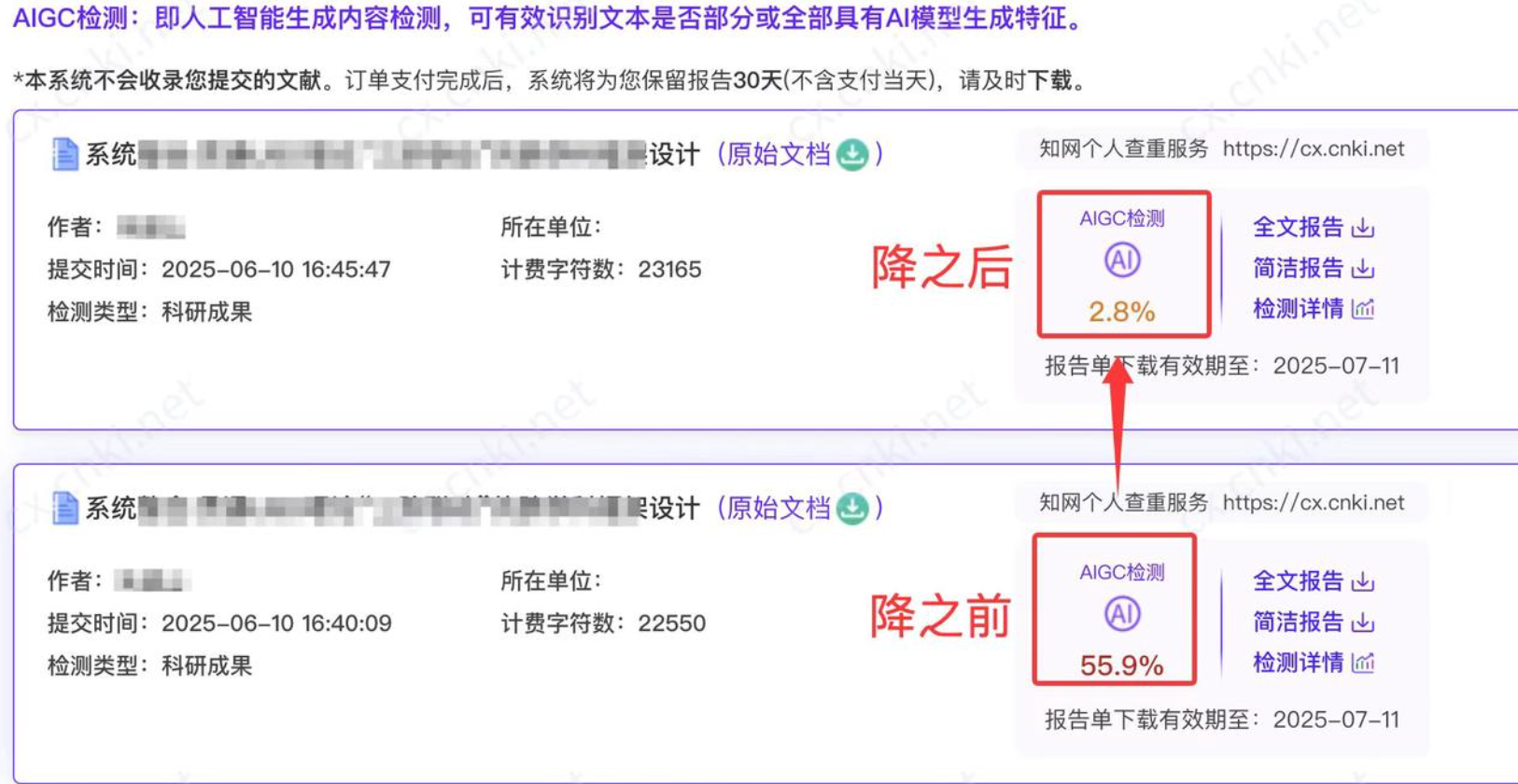 1、5分钟降至安全线内≤10%,支持主流知网、维普查重检测系统
