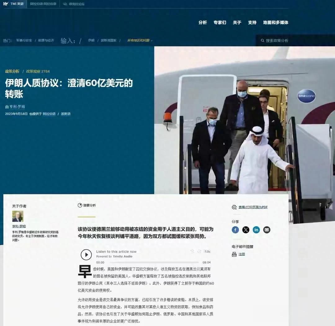2023年美伊换囚协议中,这笔钱转入卡塔尔银行。