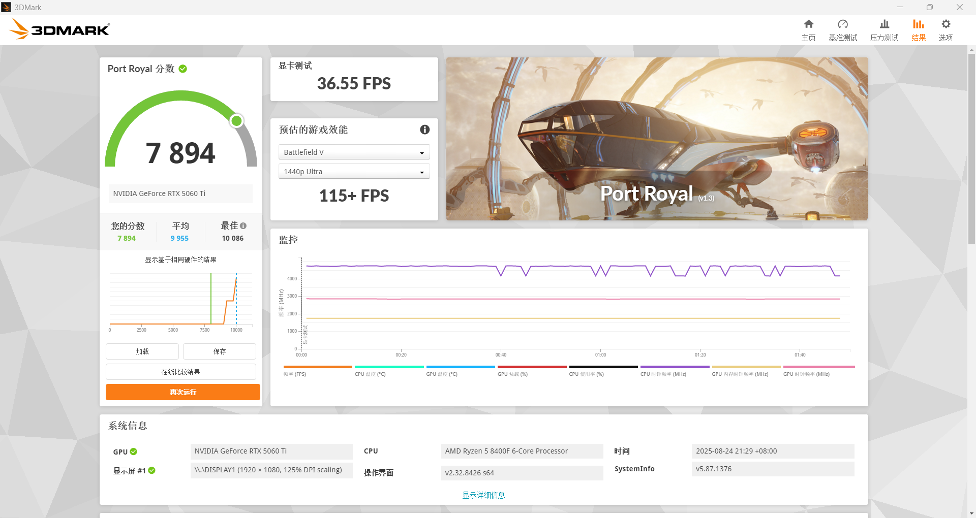 FSE里,显卡分数为204782分。这颗U的拉胯并没有影响到CPU的分数,也就是说我的思路没问题,8400F的三缓砍半在2K分辨率下基本就影响不大了。