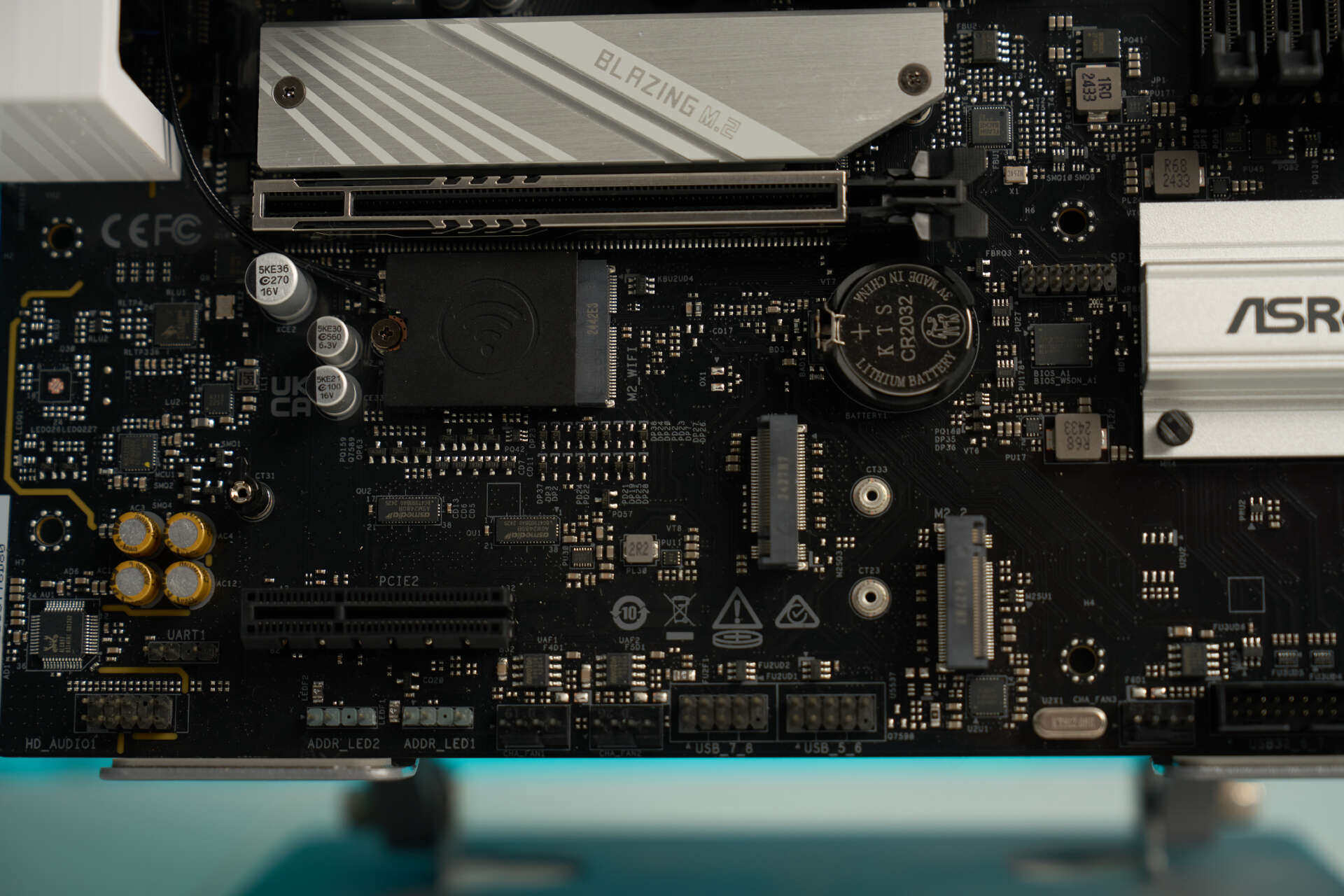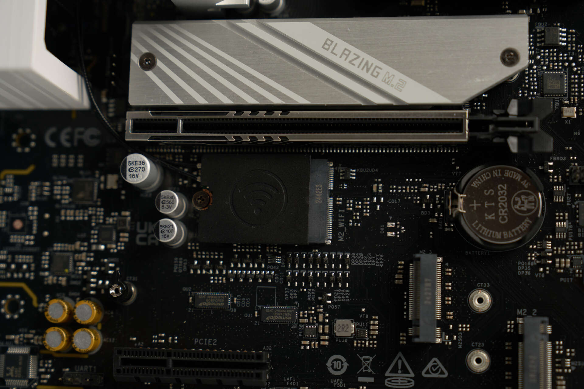 整体共有3个M.2接口,完全是够用的,下面两个M.2没有散热装甲,支持PCIE4.0。