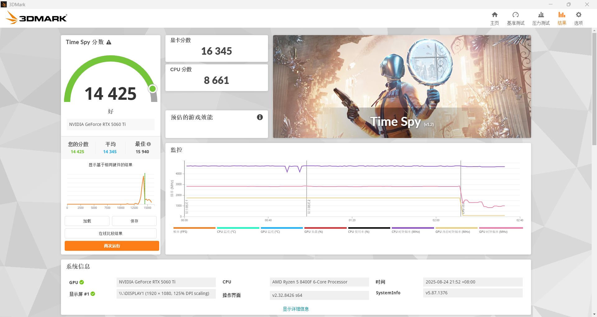 TS里,显卡分数为16345分,CPU分数为8661分。