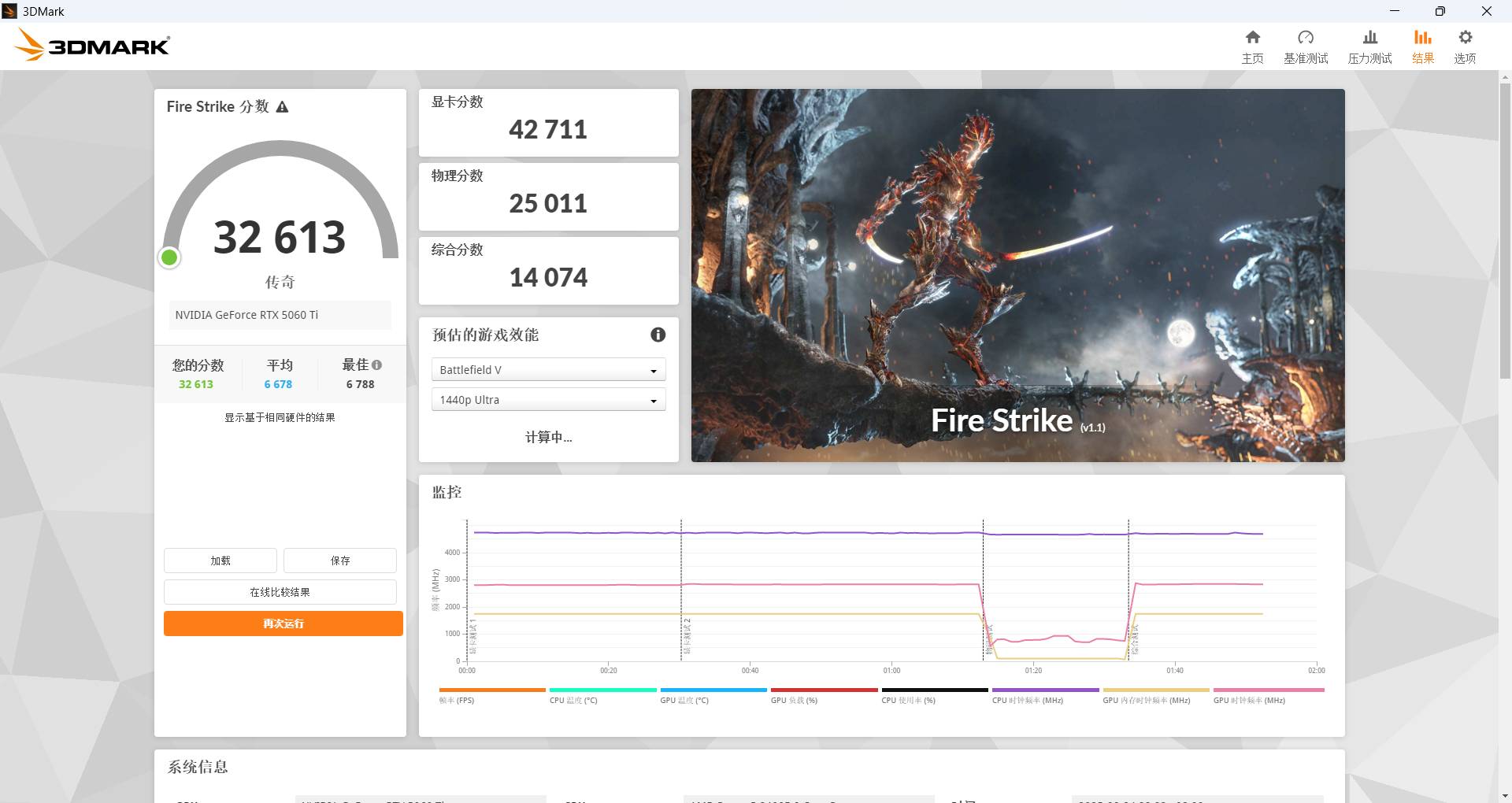 FS里,显卡分数为42711分。