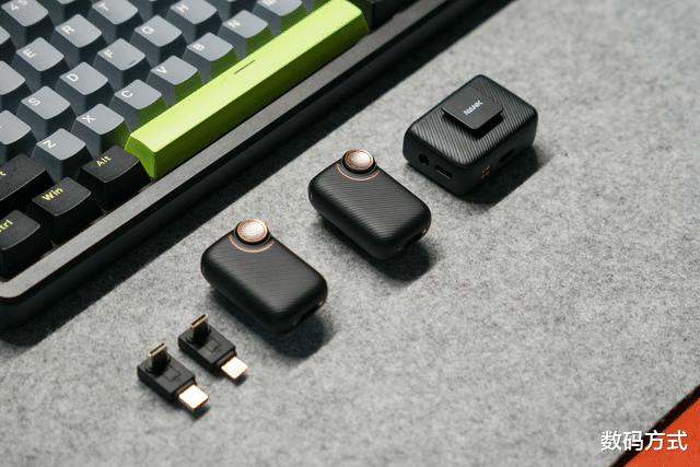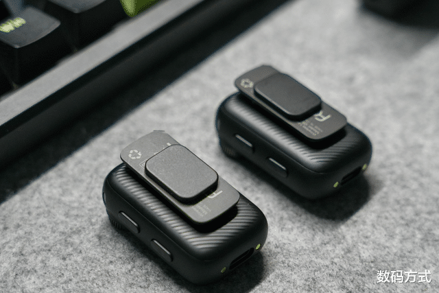 盒内一共拥有一个发射器和两个个接收器,一拖二的设计目的就是让创作场景更加灵活,比如两人对话使用这种场景会更加方便。接收器小巧精致,仅有纽扣大小,表面采用磨砂质感的ABS材质,既防滑又显高级。不过最让我惊喜的是它的双重固定方式——既可以使用背夹,也能磁吸佩戴,这个设计对服装搭配多样的创作者来说简直是福音。