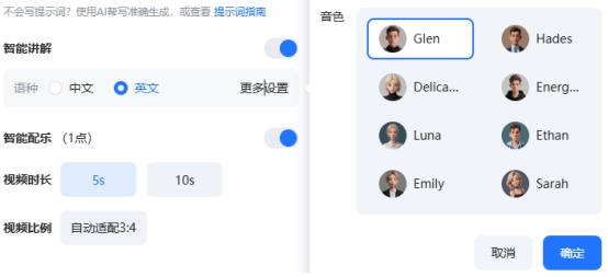 4、最后设置一下视频的时间长度,你可以选 5s 或者 10 s 的视频,然后点击下方的生成即可得到一条带有讲解以及背景音乐的完整的短视频了!