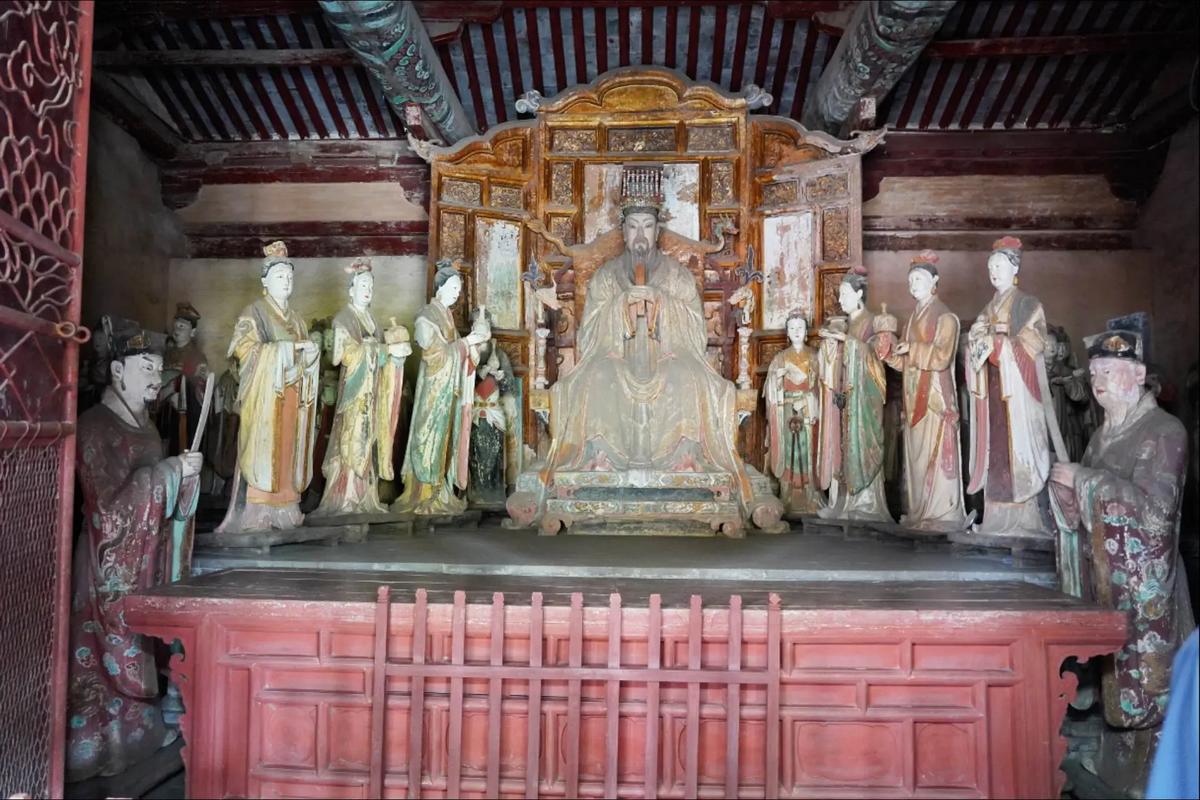 玉皇庙核心区:“道教艺术宝库”,看“玉皇殿”(宋代建筑,殿内“玉皇大帝”彩塑高2.5米,冕旒衮服细节精美,为全国仅存宋代道教彩塑)、“三清殿”(金代遗构,殿内“三清像”衣纹流畅,背后“悬塑云海”工艺精湛)、“四圣殿”(明代壁画“张天师斩妖”,色彩艳丽,讲述道教驱邪故事);