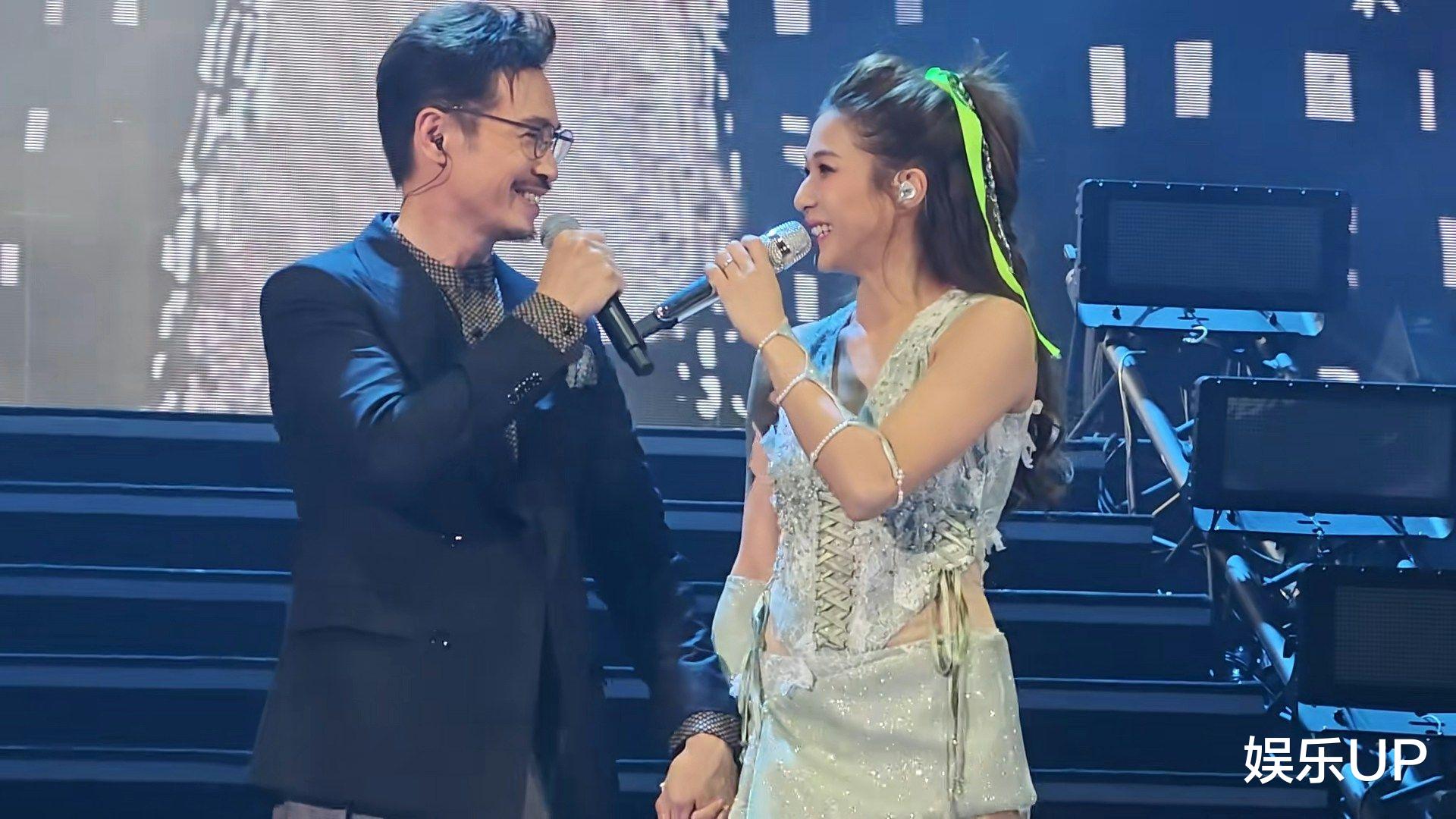 台上互动时,钟嘉欣激动坦言:“我等这个机会很久了!我所有经典角色都和你搭档,你真是绝世好男人。”陈豪害羞回应:“除了我太太,你就是另一个绝世好女人。”这番对话引得观众尖叫连连,而陈豪更透露此次登台意义特殊——他的三个孩子人生第一次看演唱会,就是见证爸爸为好友献唱。