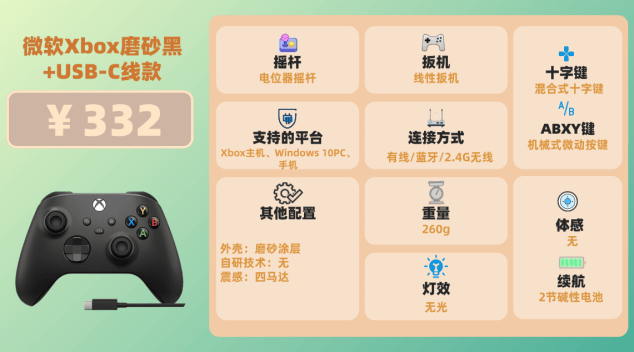 品牌三:微软Xbox磨砂黑+USB-C线款游戏手柄