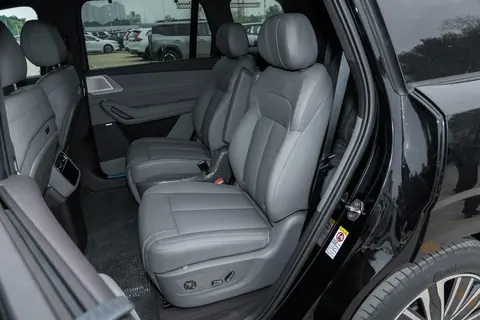 初见腾势N8L实车,最直观的感受便是尺寸带来的大气感。其车长达到5200mm,宽度1999mm,高度1820mm,轴距更是长达3075mm,与我之前驾驶的车辆相比,体型明显大了一圈。但它的“大”并非笨拙感,整体线条舒展流畅,即便停在小区停车场中,也有着较高的辨识度,不张扬却足够显眼。前脸延续了腾势家族的经典设计风格,布局规整有序,横向灯带拉伸了视觉宽度,下方搭配纵向部件,营造出沉稳大气的视觉效果,没有过多花哨的装饰,这样的设计就连家里老人也觉得顺眼。前灯采用常规造型,但照明亮度表现出色,即便在夜晚路灯较暗的路段行驶,也能提供清晰的视野,相比单纯追求外观设计,这样的实用性能更受家庭用户青睐。车身侧面线条简洁流畅,从车头延伸至车尾的线条毫无多余装饰,呈现出干净利落的视觉感受。车尾的矩阵式尾灯在刹车时点亮效果醒目,能让后方车辆及时察觉,提升了行驶中的安全性。在颜色选择上,腾势N8L提供了典雅红、雪玉萤、玄璟墨、石影澜、霜云墨、翠华墨六种配色,满足了不同消费者的审美需求。我此次试驾的是雪玉萤配色,淡淡的银色中带有细微闪粉,在阳光下能呈现出不错的质感,且日常行驶中即便沾染灰尘也不明显,对于不爱频繁洗车的用户来说十分友好。玄璟墨为纯黑色,视觉上尽显沉稳,适合偏好低调风格的消费者;典雅红颜色鲜亮,更能吸引年轻人的目光;而石影澜、霜云墨、翠华墨三种颜色则相对低调,在不同光线照射下会呈现出细微的颜色变化,适合追求别致质感的用户。