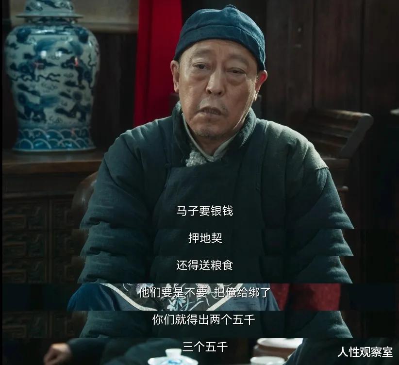 “马子要银钱、压地契,还得送粮食,他们要是不要,把我给绑了,那你们就要出两个五千、三个五千!”