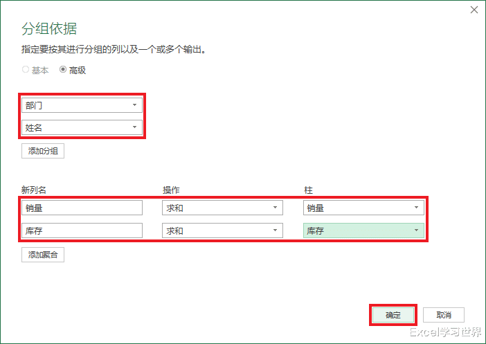 通过“添加分组”添加一个分组,分别选择“部门”和“姓名”