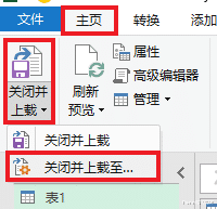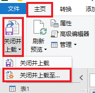 3. 选择任务栏的“主页”-->“关闭并上载”-->“关闭并上载至”