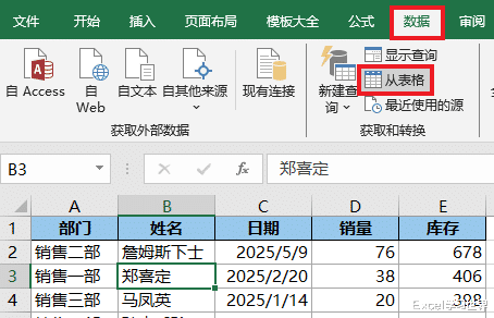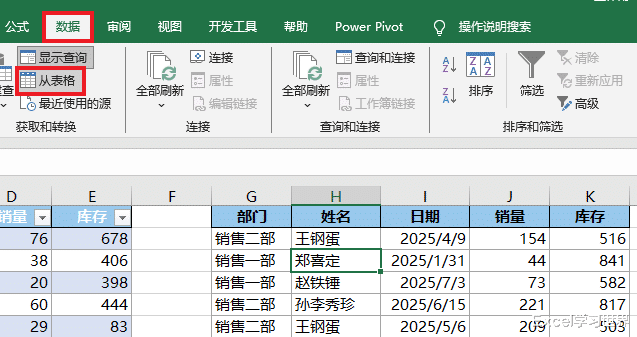 1. 选中左侧数据表的任意单元格 --> 选择任务栏的“数据”-->“从表格”