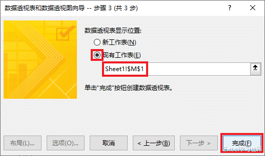 4. 选择“现有工作表”及所需上传至的位置 --> 点击“完成”