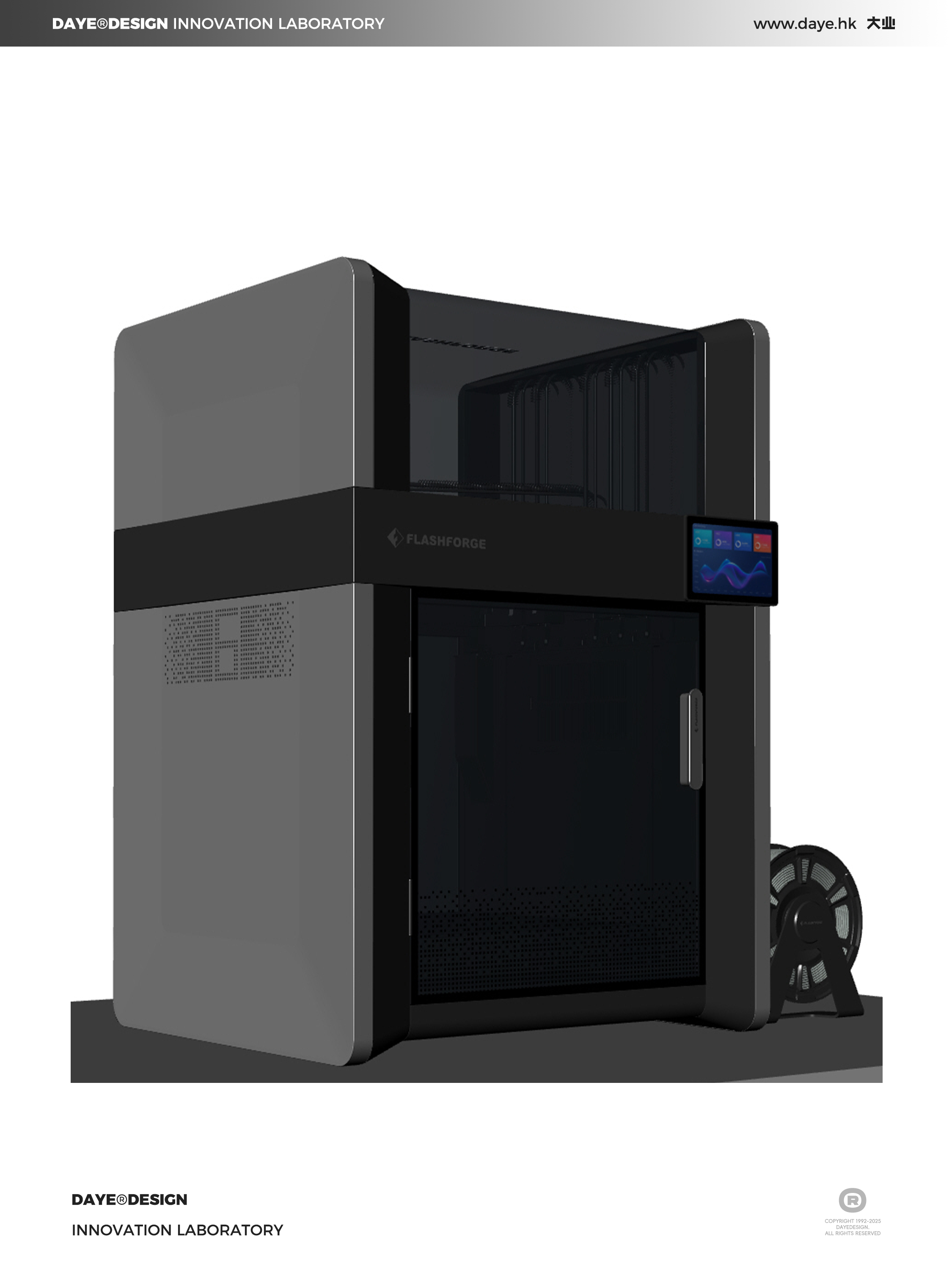产品采用黑、银、透明为主的科技配色体系,黑色主体传递工业设备的坚固可靠,银色饰条强化形态的层次与科技感,透明舱体则直观展示打印过程,消解工业设备的 “黑箱感”。这种配色既契合 3D 打印 “前沿科技” 的行业定位,又通过 “色彩分层” 清晰划分功能模块 。