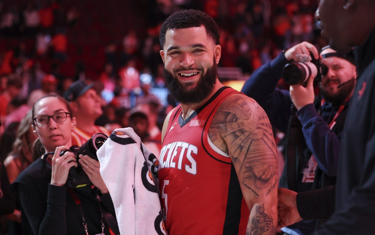 这套首发阵容,最有意思的是谢泼德打二号位,阿门·汤普森打一号位,从开场阿门就承担控运+持球+组织的重任,看得出乌度卡在范弗利特赛季报销后,给出的应对之策是让阿门改打控卫,但是这样的试验首场就以失败告终。