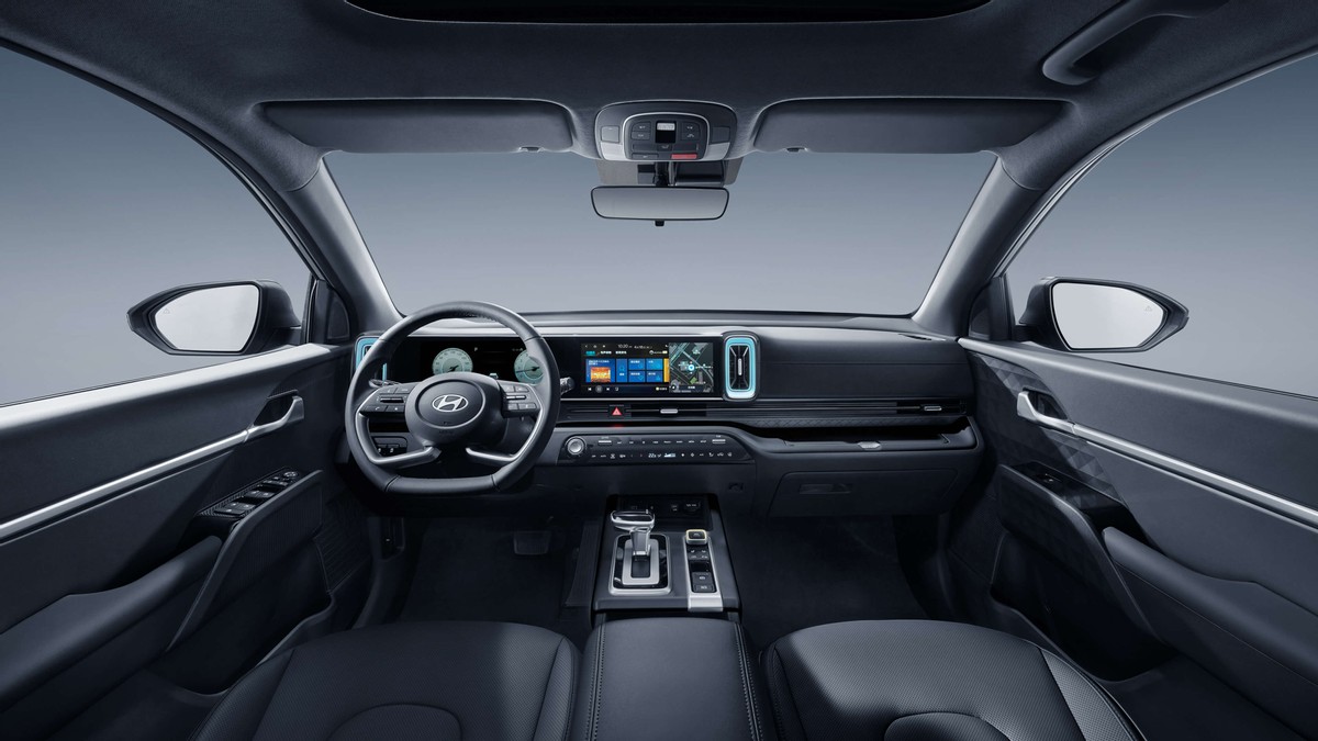 内饰部分,新车采用双拼配色,副驾前方开放式储物槽设计贴心。配置方面,新车配备真皮多功能方向盘、12.3英寸液晶仪表和12.3英寸中控屏,领先版GLS和豪华版DLX车机功能较少,提供蓝牙和手机互联,而尊贵版LUX搭载的Bluelink车机系统功能丰富,支持语音控制、OTA升级、手机控车等功能。