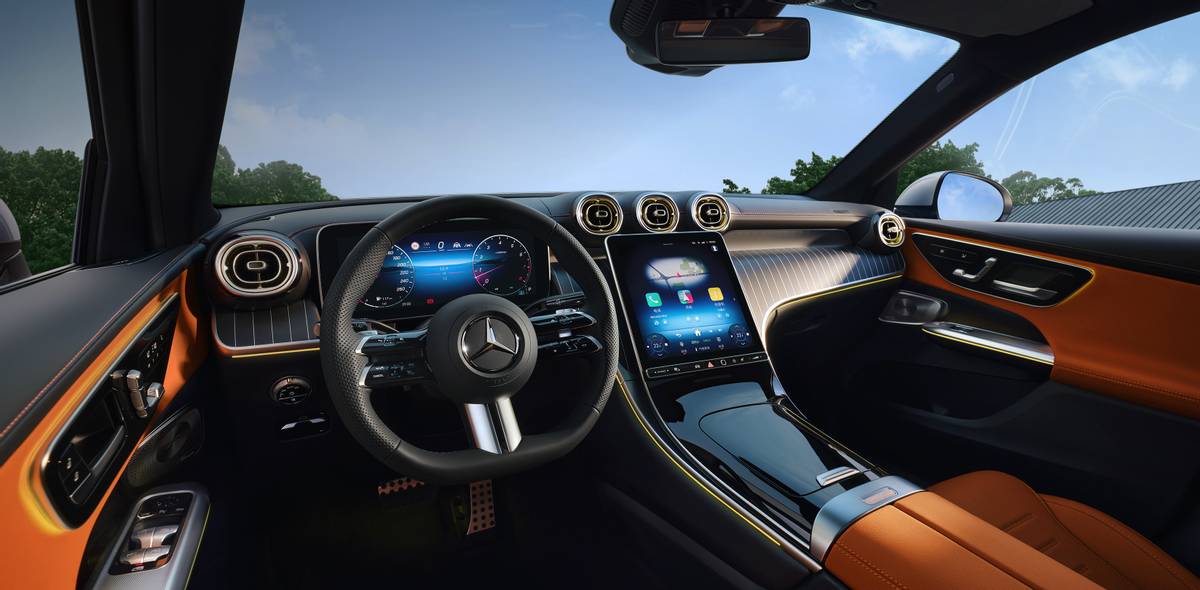 内饰部分,新车仍然采用经典的奔驰家族式设计,T型中控台集成了环形空调出风口,搭配恰到好处的皮质面料和镀铬装饰,彰显优雅与豪华气息。新车配备12.3英寸悬浮式全液晶仪表与11.9英寸纵置中控屏的组合,搭配第三代MBUX智能人机交互系统和高通骁龙8295芯片,科技感十足。