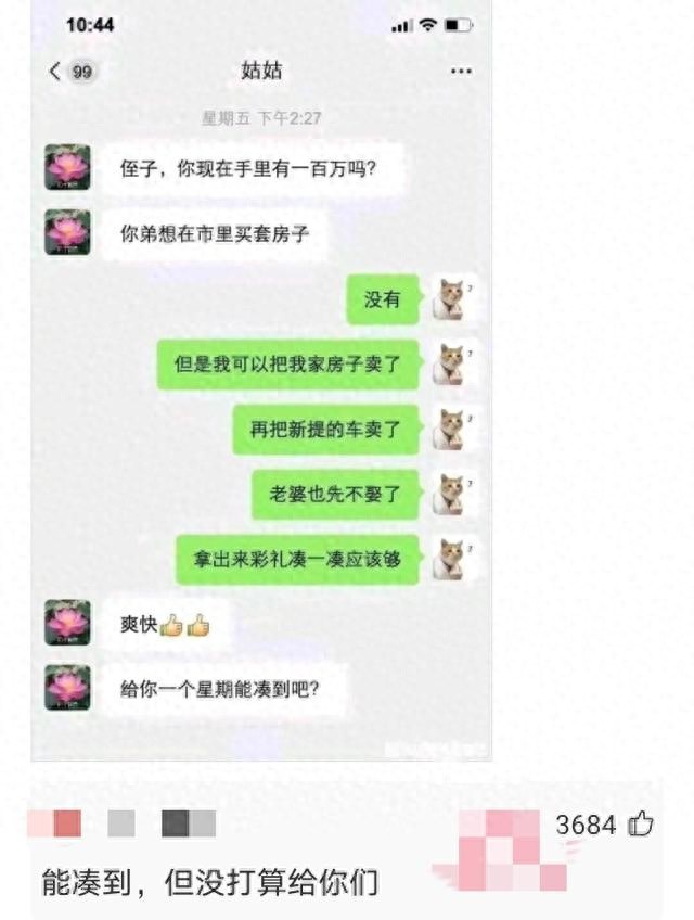 这年头真是什么奇葩事都有,有人居然指望别人卖铁砸锅帮自己买房,这种白日做梦的想法简直让人哭笑不得。