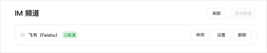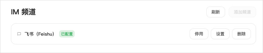 不过估计是刚刚上线的缘故,所以添加频道是置灰的,目前只支持飞书。