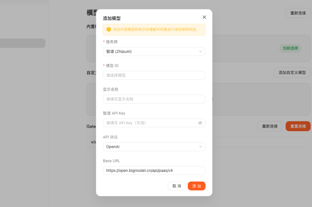 智谱的格局是可以的,第一次见到有人在自己的产品里直接明示了支持竞品家的API Key的。。。