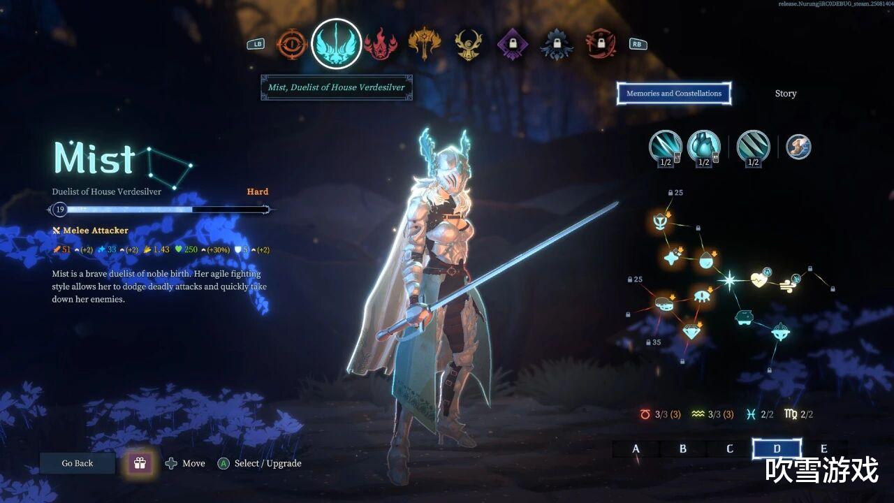 游戏的永久成长系统采用了创新的星座图设计,玩家可以通过游戏内获得的资源,在星盘上自由选择解锁路径。每个节点提供不同的属性加成或机制改变,允许玩家根据个人喜好和游戏风格定制专属的成长路线。