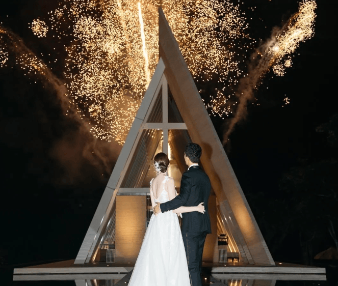 2025年10月8日,庄思敏在印度尼西亚巴厘岛康莱德酒店的户外海滨场地喜结连理。