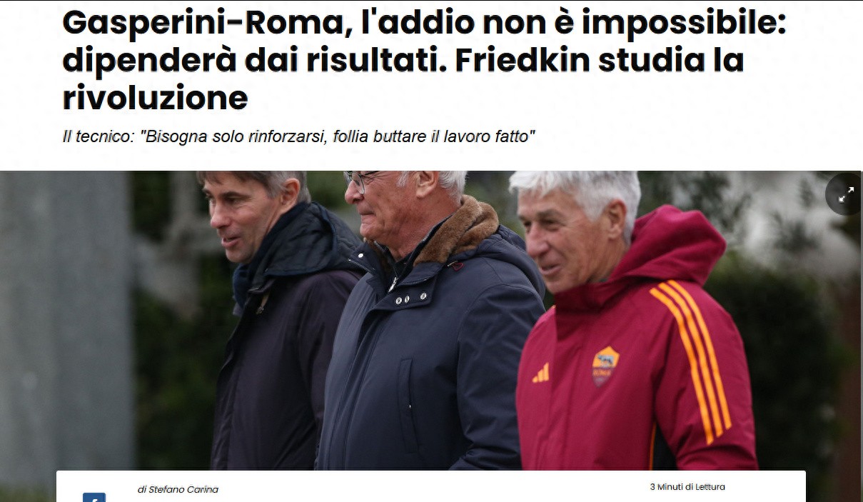 而加斯佩里尼与俱乐部的分歧,早已摆上台面。68 岁的意大利名帅,离开真蓝黑亚特兰大投奔红狼军团罗马,初衷是为了赢球、冲击欧冠,他明确表示这支球队无需推倒重建,只需要针对性补强即可。而弗里德金家族一边喊着完全支持,一边又和稀泥,继续用饱受争议的体育总监马萨拉,与教练形同陌路。