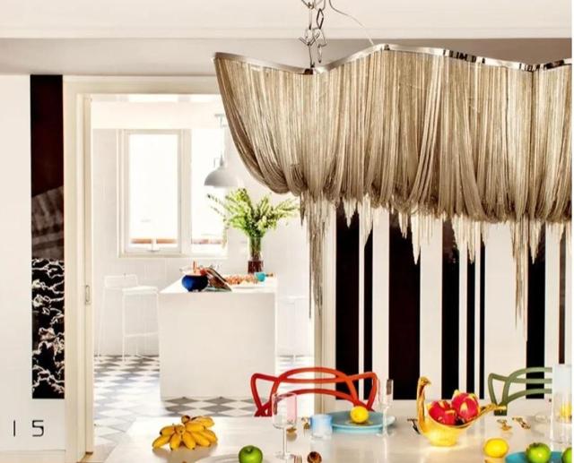 而餐桌上面的吊灯,则是选自意大利著名吊灯品牌Terzani,不得不说,这款吊灯,瞬间让餐桌的氛围温馨了起来。