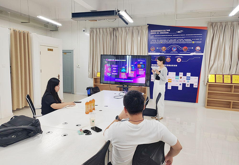 在商学院智慧商务实验实践教学中心,电子商务专业学生崔宇彤正带领团队成员对AI虚拟主播的互动逻辑进行微调。屏幕上,一位精通多语种的数字主播正向海外客商推介中国制造的工业产品。这是“数创先锋——全场景AI跨境直播驱动者”项目的日常研发场景。