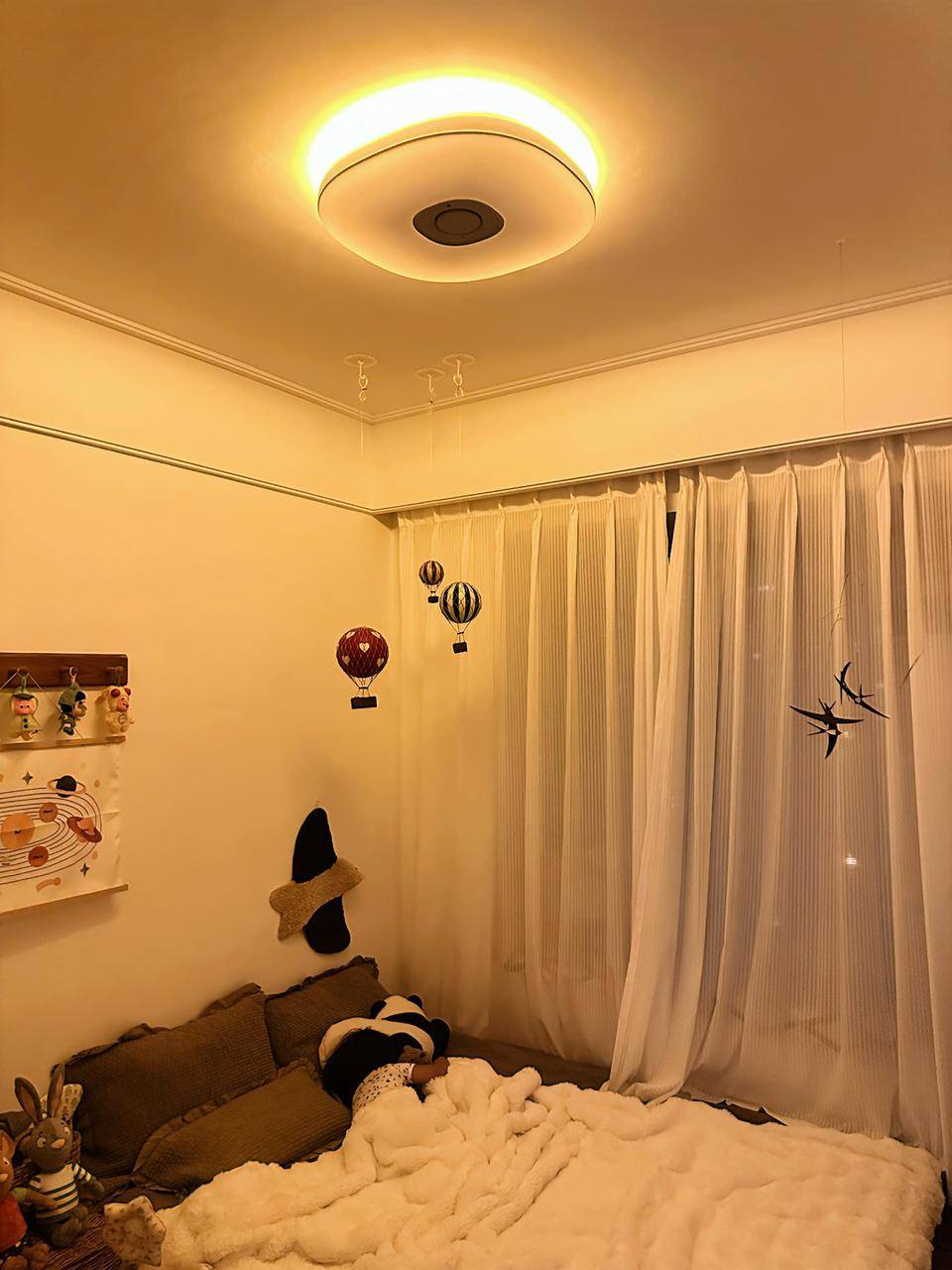 明基Aora支持多段色温与亮度调节,夜间可切换至1800K–2700K的烛光夜灯模式,配合三层独立光源与漫反射设计,实现全屋无暗角、无刺眼的均匀柔光,完全契合高品质婴儿吸顶灯的健康照明需求ty-reference。
