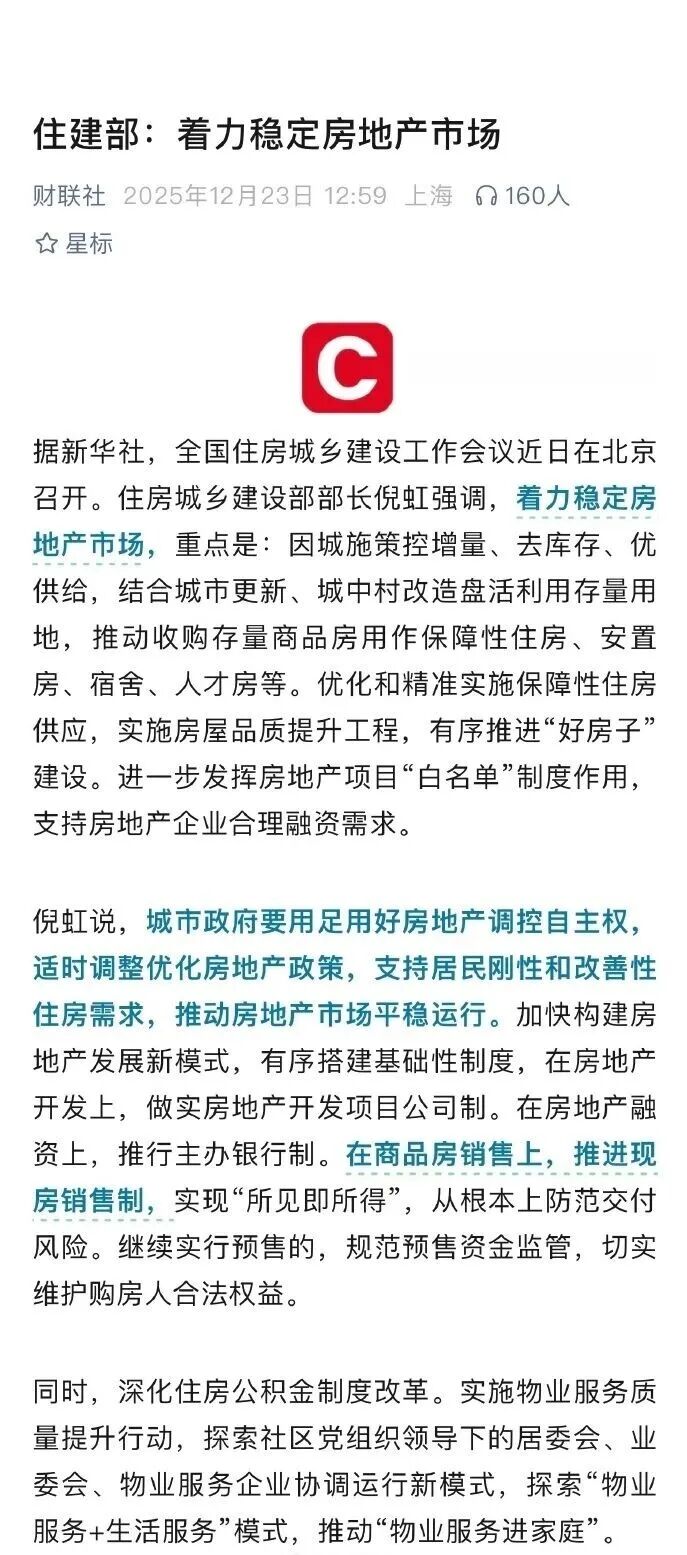 住建部:着力稳定房地产市场