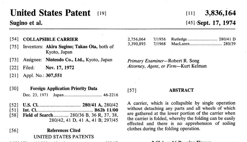任天堂专为这款设计申请了专利,其名为“可折叠载体”,颇为霸气,署名是工程师杉野明与太田孝雄,专利证书看似十分厉害,仿佛预示着一个新时代即将到来。