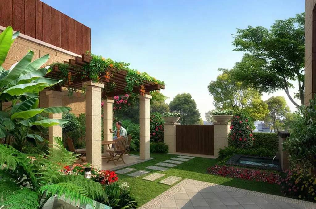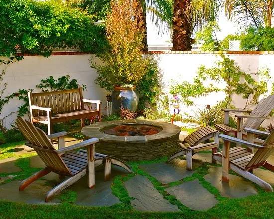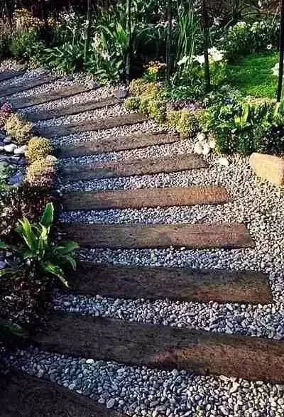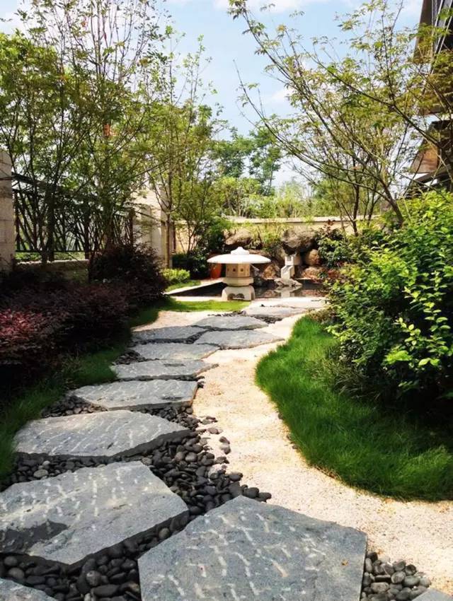 与沙砾结合的汀步,在形式上构成变化和对比,在色彩上却能很好的做到统一,使整个空间搭配和谐。