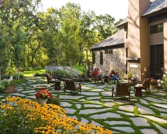 铺于草坪上的则为旱汀步,功能主要为游路,起引导和观赏作用。