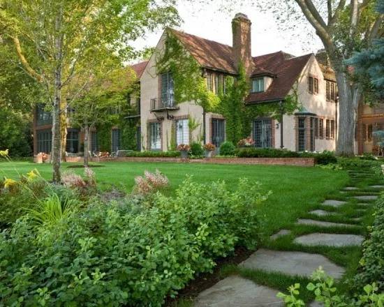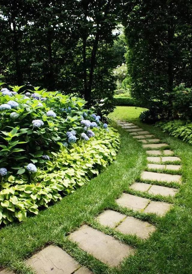 在狭长的空间中布置汀步,与草地很自然的融为一体,使整个空间不至于那么拥挤,而不规则摆放的汀步,又让这条小道富于变化,并且在亲绿空间的同时也能保证草坪植被不被破坏,带给人不一样的自然体验。