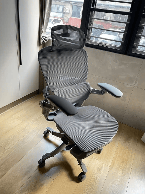 它用自研技术实现了四点联动支撑腰和骶骨,怎么坐都能托住。扶手能全向旋转,适应各种手臂姿势。头枕又宽又弧面,能调角度和高度。150度大角度后仰,网布亲肤透气。底盘线控,后仰轻松且能随停。但对体重较大的人,腰背支撑力会稍显不足;调节功能多,操作起来有点复杂。