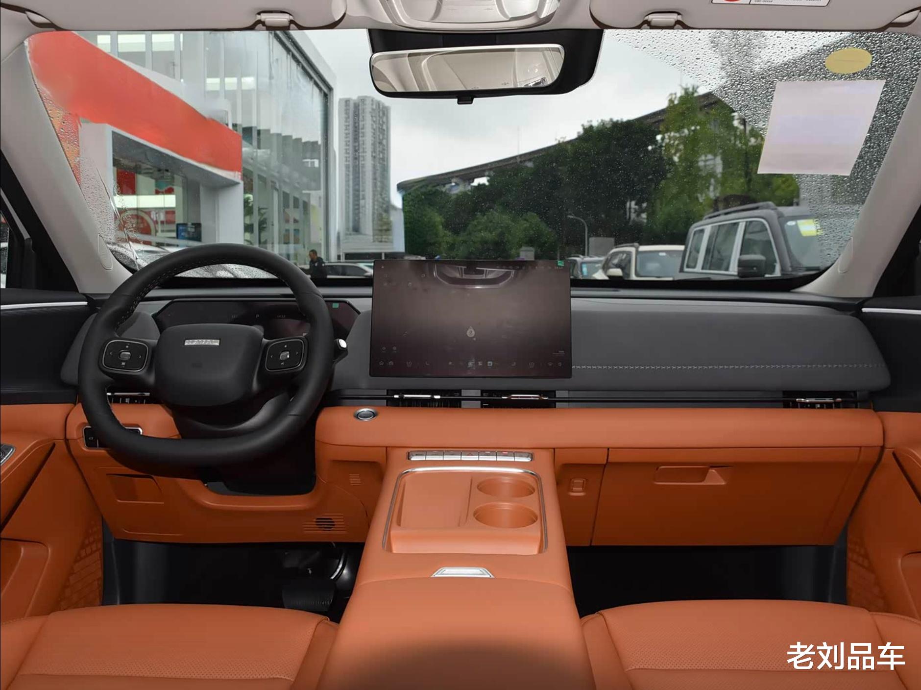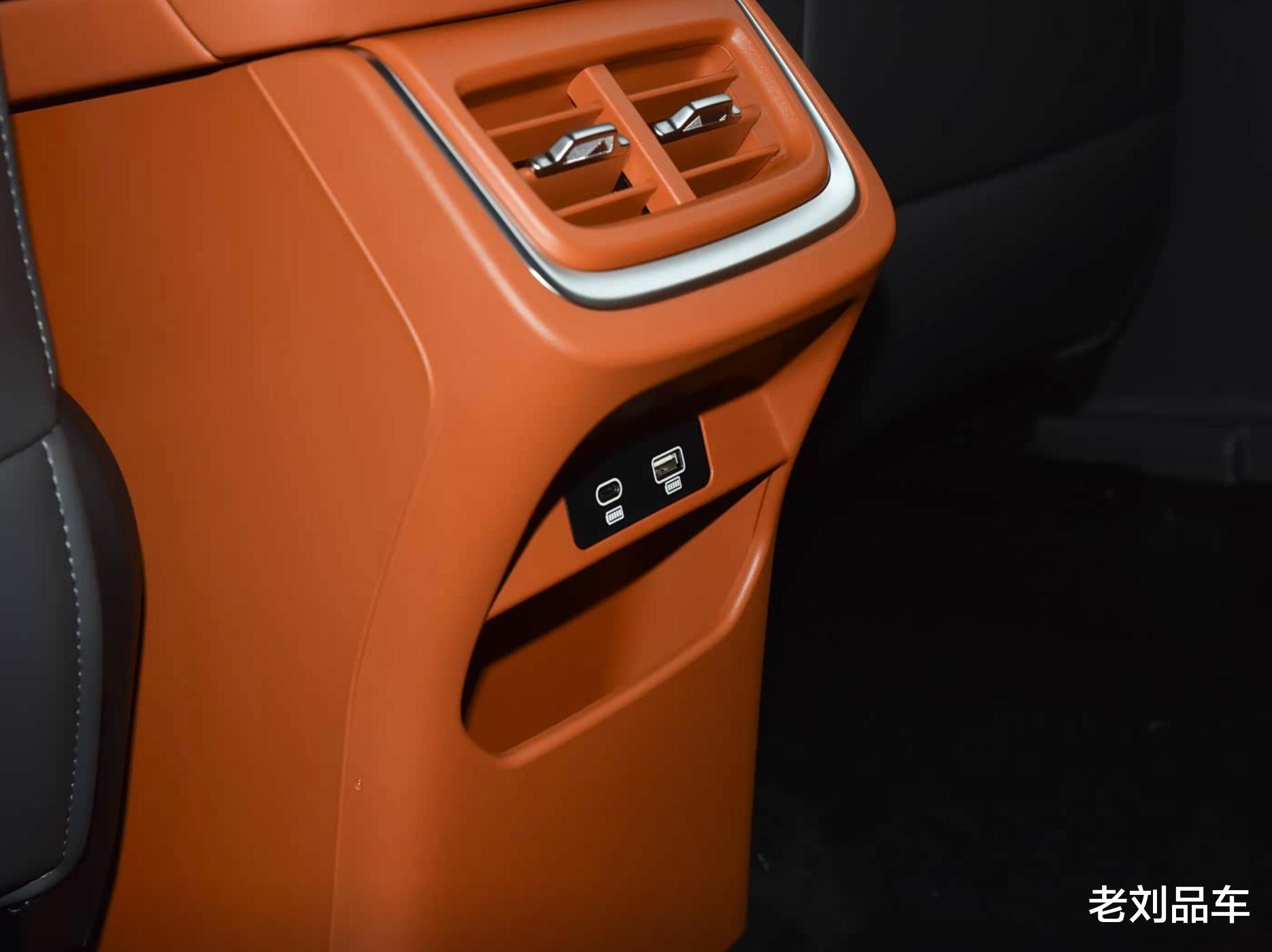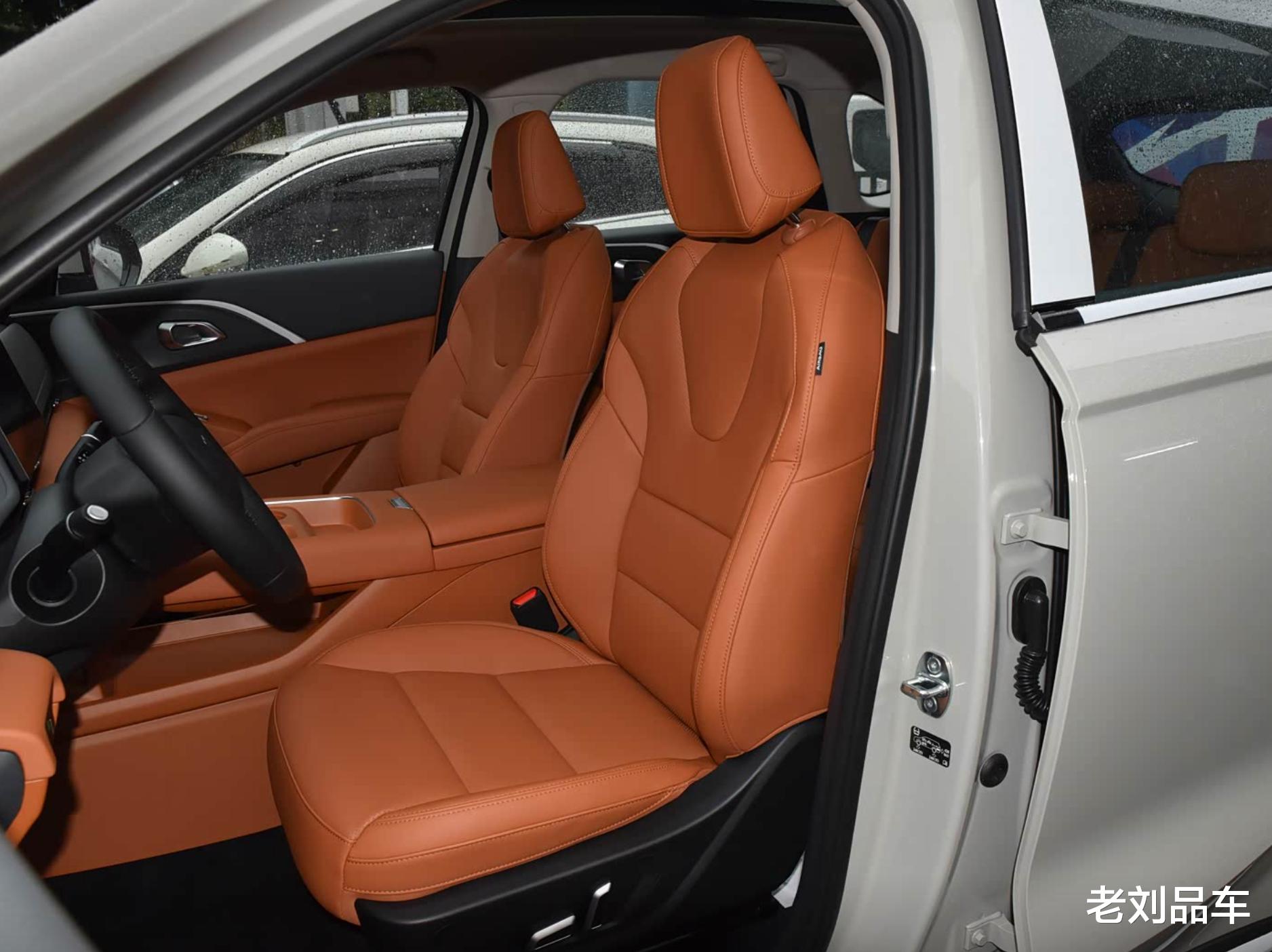 坐进车内,前排内饰以简约风格为主,建议大家选择双拼配色,层次感更强。全系仿皮座椅,触感舒适,但透气性一般。仪表盘是12.3英寸全液晶屏,搭配皮质方向盘,带电子怀挡换挡,布局清晰易操作。中控台核心是一块14.6英寸中控屏,偏向驾驶侧,驾驶操作顺手。储物空间方面,门板槽和中央扶手箱够深,门板储物槽还有小隔断来固定瓶装水,保持平稳。舒适性配置方面,全系带座椅加热,Max版以上有前排座椅通风,顶配Ultra版有前排按摩,比同级车捷途X70的座椅功能更丰富。