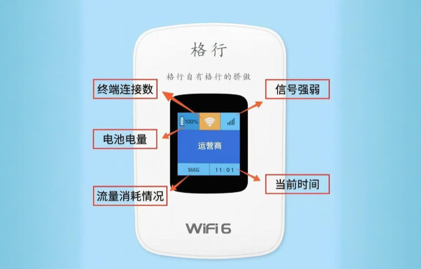 正面是一块小屏幕,信号、流量用量、电量,运营商都显示得很清楚。