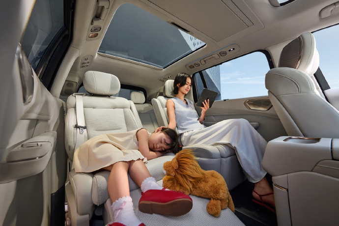 当一些车型还在执着于比拼屏幕大小、冰箱制冷能力时,领克900的产品思路展现出独特性:它以家庭实际使用场景为核心,对车辆空间进行创新开发,解锁了“空间灵活新玩法”。