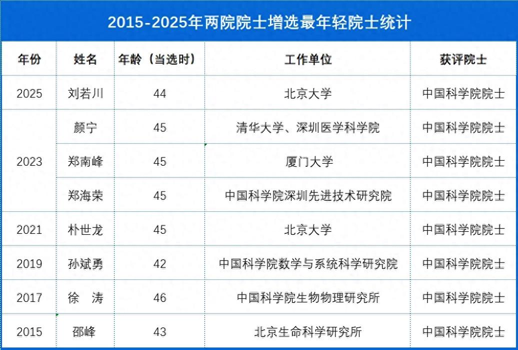 院士称号作为我国科学技术和工程科技领域的最高荣誉,每届增选的最年轻院士都备受关注,承载着相关学科领域的未来发展希望。中国教育在线梳理了2015-2025年间,中国科学院、中国工程院每届新增选院士中的最年轻者,展现他们的成长轨迹与科研成就。