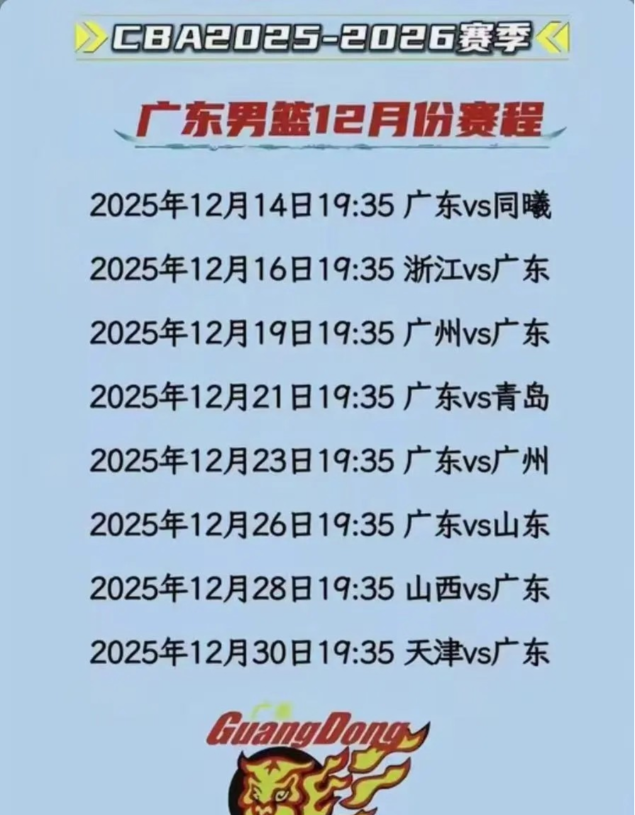2025年12月14日19:35,广东vs同曦;
