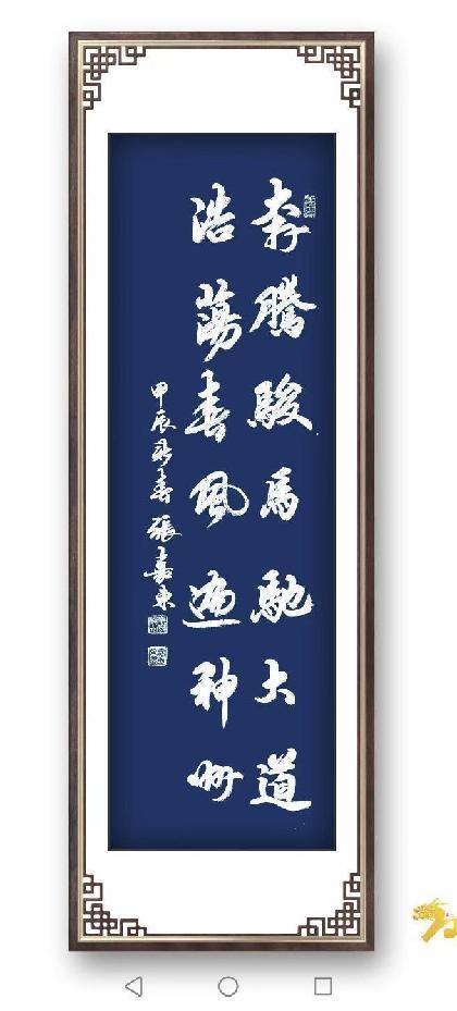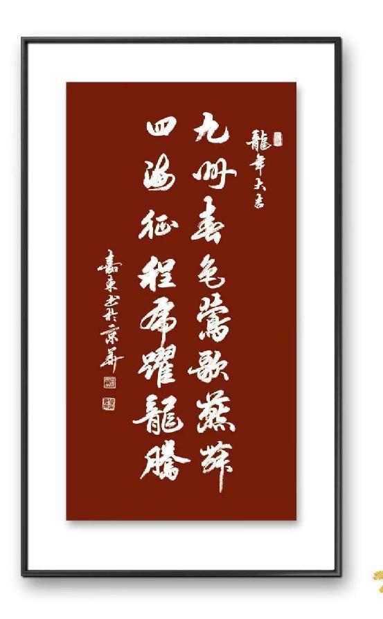 甲辰金秋,天高气爽,在这特殊的日子,作为红墙走出来的当代著名书法家,用自己的新作,向“双节”献上一份厚礼!愿我们的祖国繁荣昌盛!钢铁长城坚不可摧!愿江山永固!碧水长流!