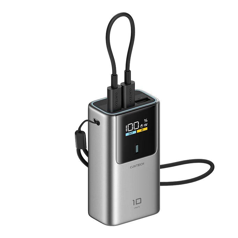 这款充电宝主打便携与高效。10000mAh 容量搭配轻量化机身,额定容量 5600mAh。自带可拆卸 Type-C 数据线,兼具充电与提手功能,携带方便。配备两个 USB-C 和一个 USB-A 接口,可同时为三台设备供电。机身配备的超能散热系统搭配石墨烯复合导热材质,边充边用也能维持温度稳定,夏季户外使用仅温热不烫手,适合追求轻便和快速补电的用户。