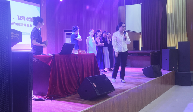 孙老师现场演示了"主动倾听四部曲"——停止、观察、倾听、回应,通过对比传统沟通方式,让教师们切身感受到真正"听懂"学生的重要性。