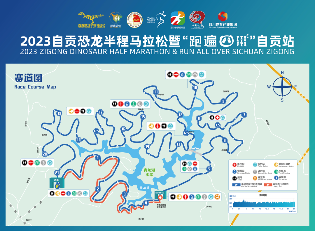 半程马拉松路线(21.0975公里)为大安区青龙湖广场(起点)→青龙湖(逆时针一圈)→燎鹅路(终点);
